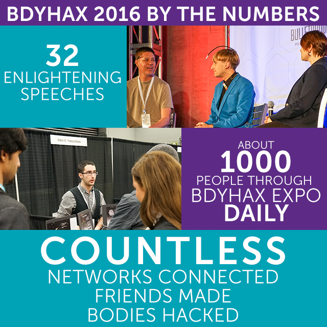 Our inaugural year was incredible. Registrants from all around the world combined hundreds of curious bodyhackers to form a Voltron-esque amalgamation of excellent talks, parties, panels, and meetups that we were proud to have been a part of.